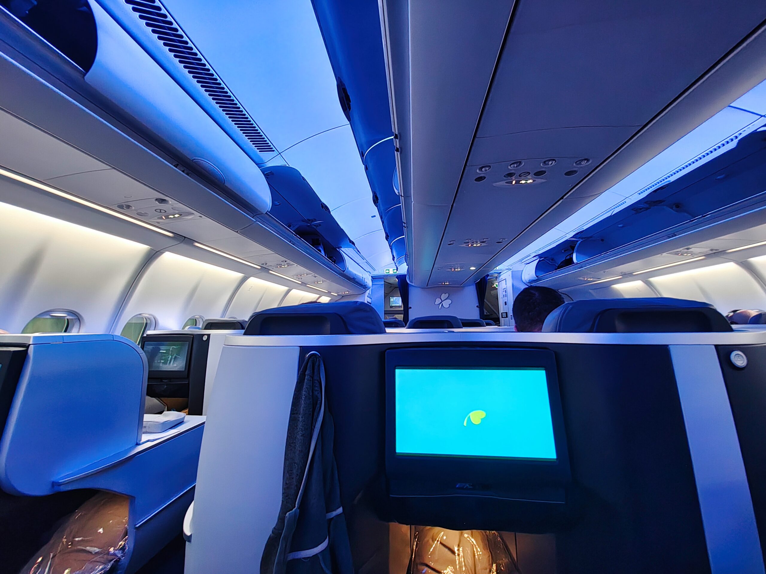 Across the cold tarmac and up the back stairs, and the cabin showed all the traditional signs of the standard European national carrier short-haul starter kit; well-worn leather seats, less legroom than many low-cost carriers, overhead bins packed beyond any storage limit by virtue of checked bag fees, and of course the exact same thing in business class but divided by a curtain that may or may not ever be fastened closed.