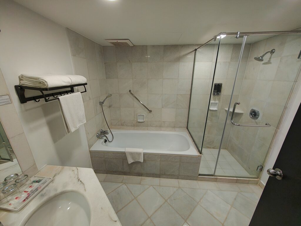 Up to our room, and after two nights in the wilderness, we were absolutely delighted. Our room was spacious, immaculately clean, and had everything needed for a comfortable, relaxing one-night stay before continuing our Borneo adventure the next morning.