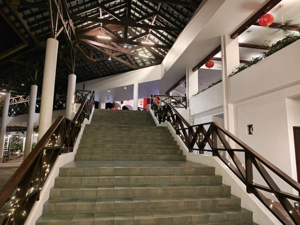 Check-in formalities in the breezy, airy lobby were handled quickly, and it seemed we were one of many groups of tourists relocated there as a result of the flood situation, as we were immediately given information on the included dinner, as well as breakfast for the next morning.