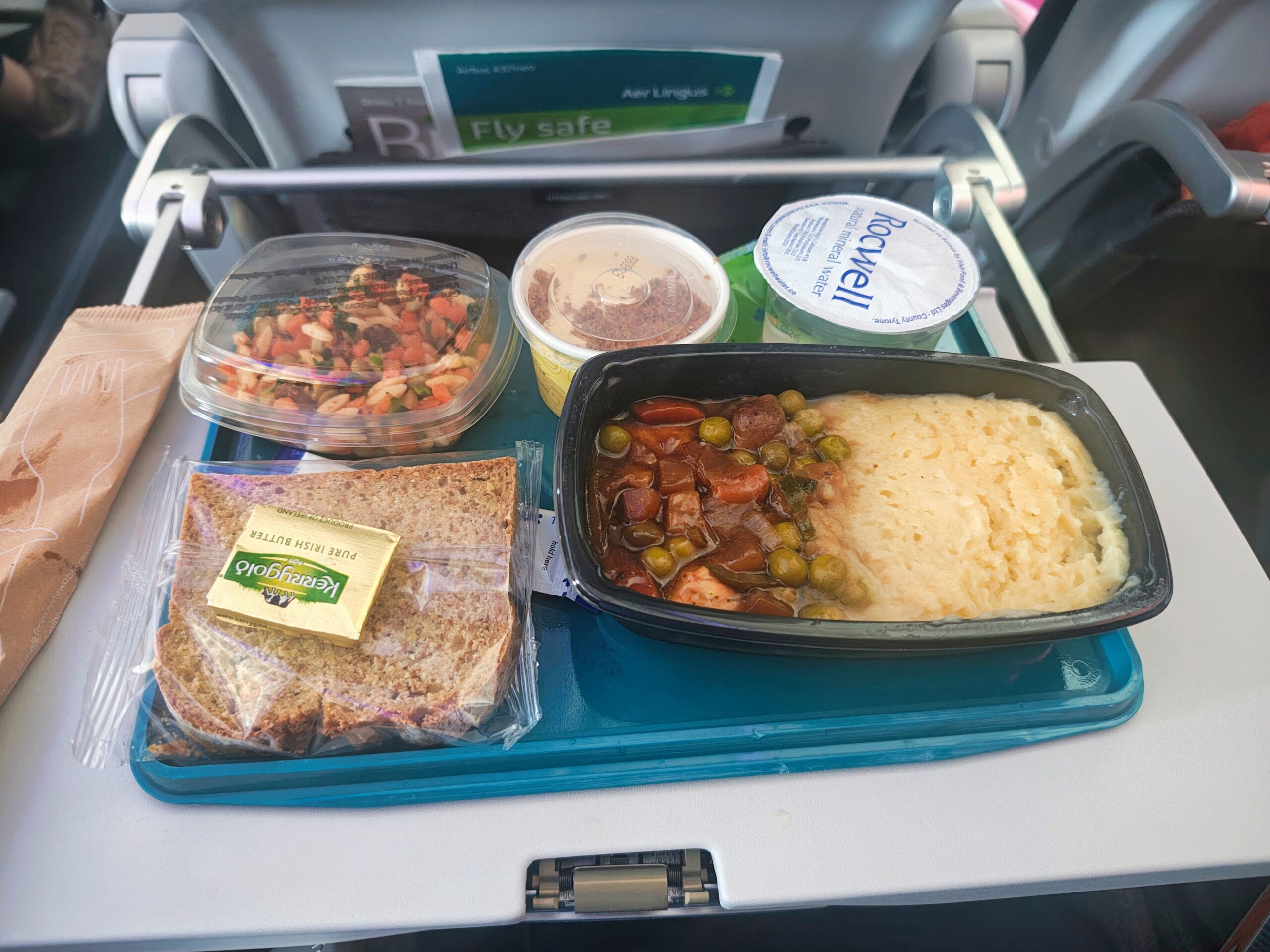 Our lunchtime economy meal was very average and a little disappointing. I realize Aer Lingus is a value carrier, and not attempting to be particularly luxurious or elegant, but the portion size was really quite small, and largely tasted of salt. In a country with a pretty strong culinary and agricultural heritage, it'd be nice to think we could showcase something a little more flavoursome.