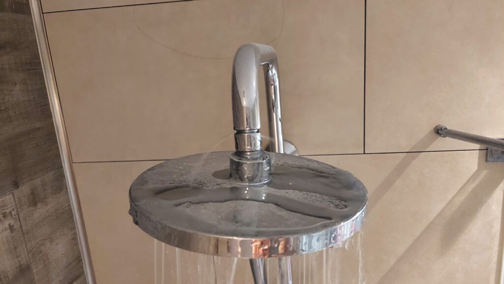 Oddly, for those staying there, the second set of towels is stored in the room wardrobe in case you’re looking for it (but check first, for reasons I’ll come to in a moment) – you’re welcome – and I was quickly able to avail of the shower, which, continuing the trend of substandard maintenance, was mostly leaking from above the shower head creating a surprise rainfall effect not part of the original design.