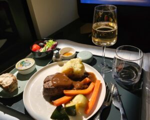 >  Etihad business class dinner